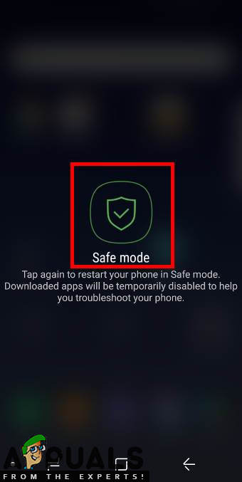 Tapping on the “Safe Mode” option to launch the device in the Safe Mode - After restarting the words “Safe Mode” can be seen on the lower left corner of the screen.