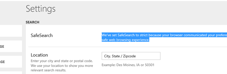 “We’ve set SafeSearch to strict because your browser communicated your preference for a safe web browsing experience”