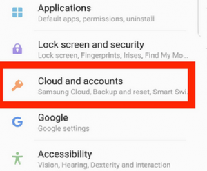 - Once you’re inside, tap on Accounts and look for an entry called Samsung account.