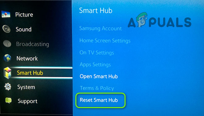 - Navigate to your TVs Settings and head over to the Smart Hub section.