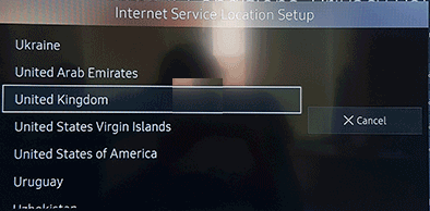 - Change the country setting to another one (for instance, USA or Australia) and agree to the Samsung terms and conditions if prompted.