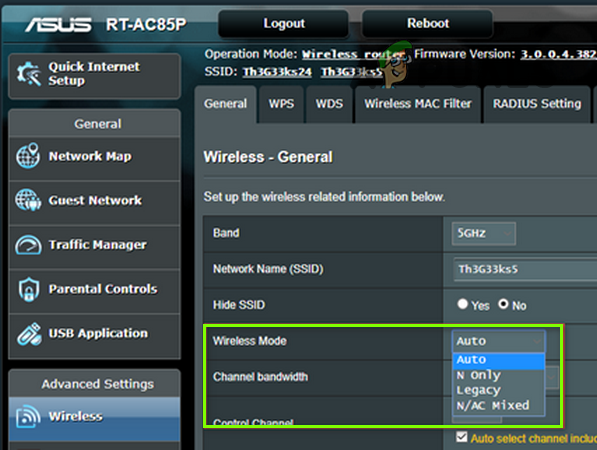 - Try changing the wireless mode to Legacy, G, N, or Auto to determine if that resolves the connectivity issue.