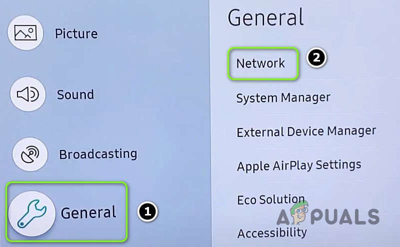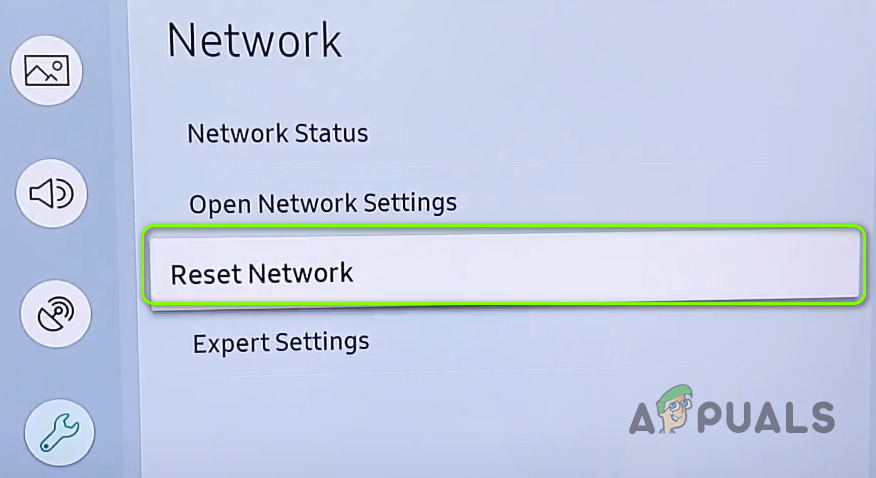 Open Network in General in the Samsung TV Settings - Confirm the reset and wait for its completion.
