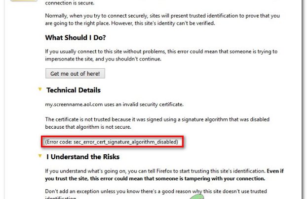 Some users are seeing the Error Code: sec_error_cert_signature_algorithm_disabled when trying to visit certain websites from their FireFox browser. Most affected users report that the issue started occurring abruptly – prior to this, the web pages could be visited without issues. The issue is reported to occur on both Windows and Mac computers.