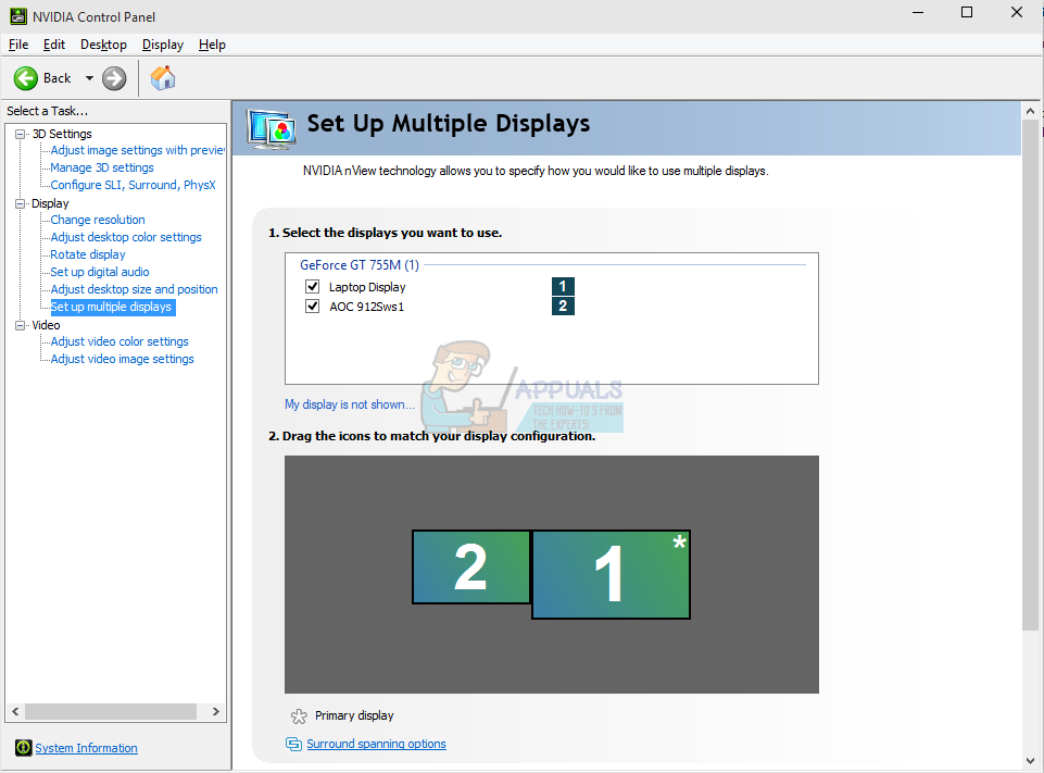 If you installed the full driver for your NVIDIA and AMD graphic cards, you will need to run NVIDIA or AMD software to enable Multiple Display. We will show you how to turn on multiple displays using NVIDIA Control Panel.
