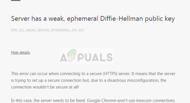 Users experience the error message ‘Sever has a weak ephemeral Diffie-Hellman public key’ when they try to access a website from their computer but the security protocols are not set correctly. This error message doesn’t mean anything is wrong with the user’s end. This problem originates from the server side where the security configurations are not properly. There are still a few workarounds to access the website but the issue has to be fixed properly by the webmaster.