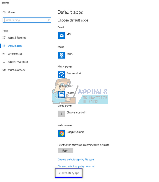 - Select “Set defaults by app” present at the lower end of the window.