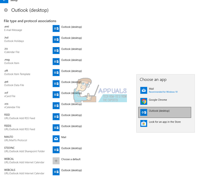 This error primarily states that Outlook requires that all the protocols used for synchronization are not set to Outlook; instead, there may be some other application which is set to open that specific protocol. This usually happens when you install an application or by default, the protocols are not set to be opened by Outlook. We will go through all the available workarounds regarding this issue. Start with the first one and work your way down.