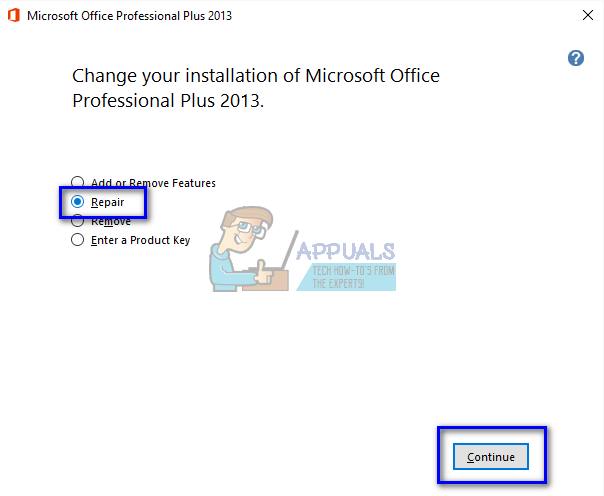 - Select “Repair” from the list of options, click “Continue”, and follow the onscreen instructions.