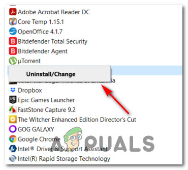 - When you manage to identify the correct entry, right-click on it and choose Uninstall from the context menu that just appeared.