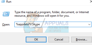 - Press Windows + R, type “%appdata%\Skype” and press Enter.