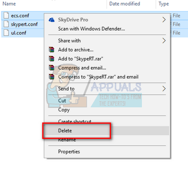 Another workaround which seemed to solve the problem was deleting the configuration files of your Skype account from your computer and then resetting the internet settings. After you delete these files, Windows will automatically recreate them; hence avoiding any bad configurations which were there in the past.