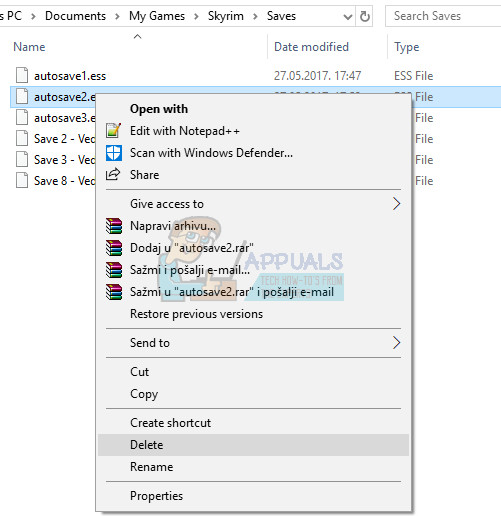 While playing Skyrim, the game is often auto-saved during your progress every couple of minutes which prevents you from losing your progress often. Also, there is an option to quicksave your game without too much hassle. However, you should try and switch to a manual save you created for your character and delete the rest since the error may occur because of a faulty quicksave or auto-save.