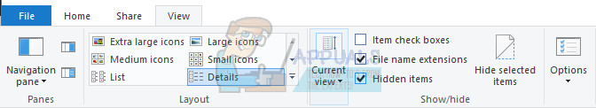 - Click on the “View” tab on File Explorer’s menu and click on the “Hidden items” checkbox in the Show/hide section. File Explorer will show the hidden files and will remember this option until you change it again.