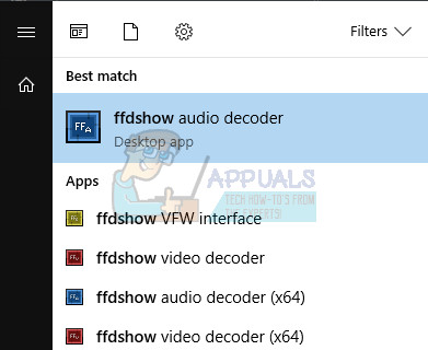 - Click either on the Start menu or the Search button located next to it and type ffdshow in the search bar.
