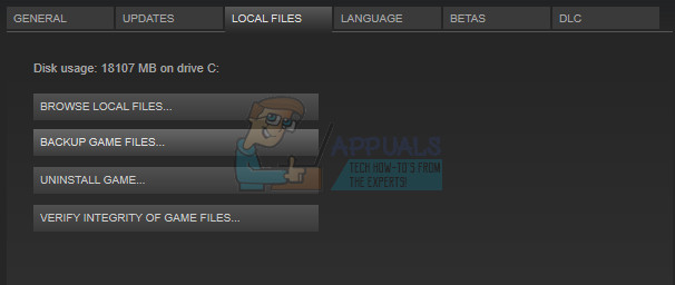 - Navigate to the Local Files tab and click on the Verify Integrity of Game Cache… option