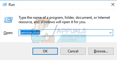 - Type “services.msc” without the quotation marks in the Run dialog box and click OK.