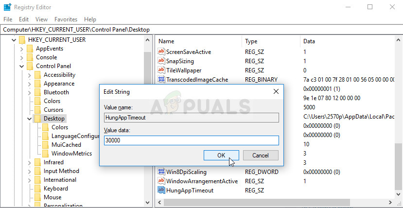 - Click on this key and try to locate an entry named HungAppTimeout. If you fail to find it, create a new String Value entry called HungAppTimeout by right-clicking at the right side of the window and choosing New >> String Value. Right-click on it, and choose the Modify option from the context menu.
