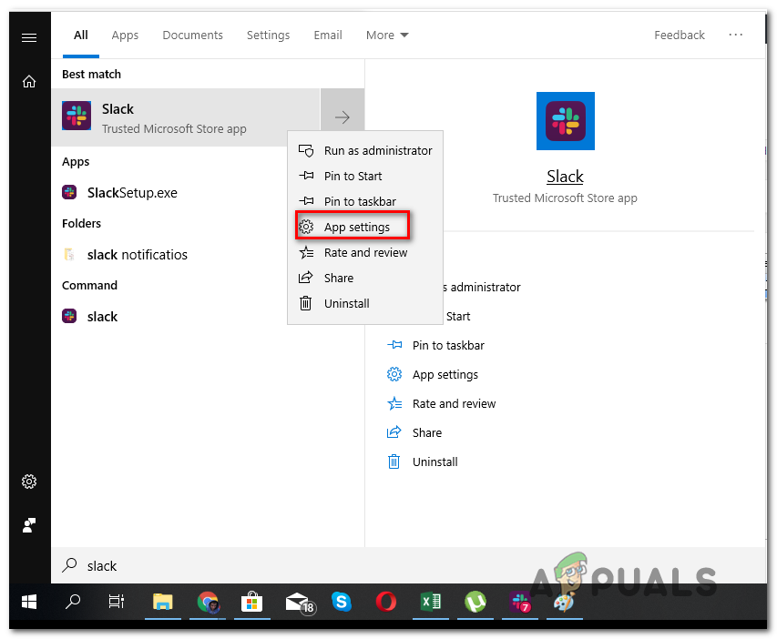 Note: If you have both versions of Slack, ensure that you’re targeting the UWP version. The UWP version has a small text with “Trusted Microsoft Store App” under it.