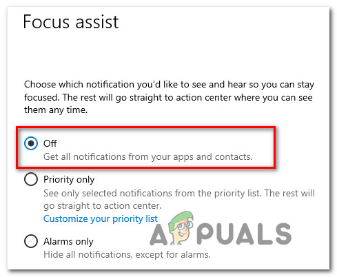 Another popular reason why you might be seeing this particular issue due to a Windows productivity feature called Quiet Hours (rebranded as Focus Assist). If you didn’t know, this feature will disable all notifications during a set time that you get to configure yourself.