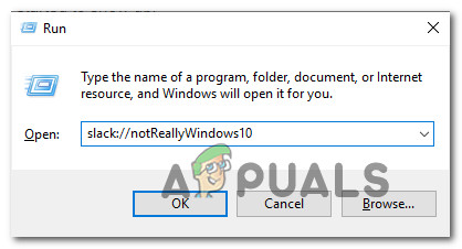 Several affected users have reported that the issue was fixed after they disabled Slack’s integrations with Windows Action Center and reverted back to the previous notification behavior. This can be done quite easily with a simple Run command.