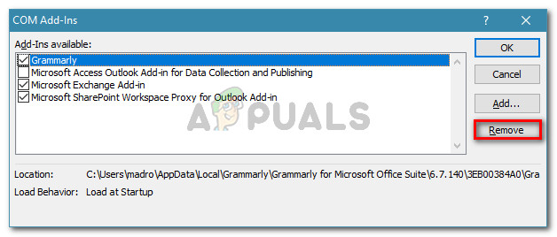 - Outlook add-in is interfering with the search function – Several affected users have gotten the issue resolved after uninstalling every 3rd party add-in that was active inside Outlook. Apparently, some add-ins have the potential of affecting the search function.