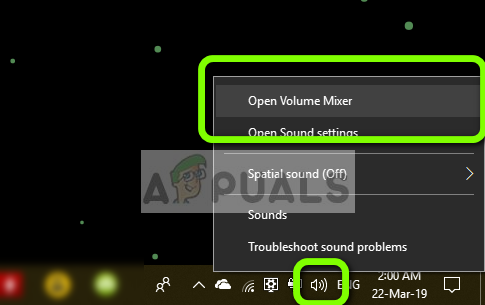 - Right-click on the sounds icon present in your Desktop and select Open Volume Mixer.
