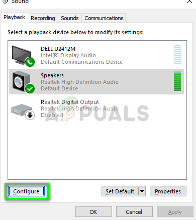 - Once in sound settings, click on your output speaker and click on Configure present at the bottom left side of the screen.
