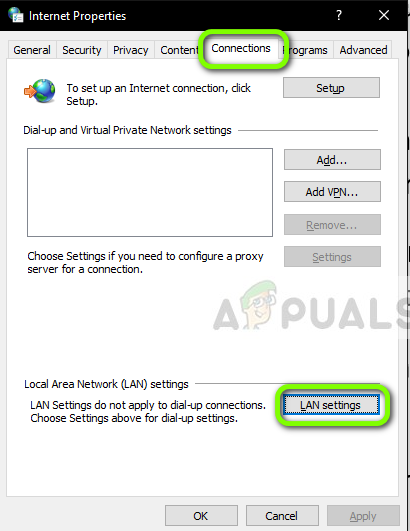 LAN Settings - Now if you are using a proxy server, the field will be checked with the details inside. Uncheck any proxy servers if enabled. Now restart the application/webpage and check if the issue is resolved.