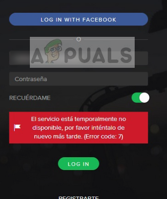 Spotify is a digital music service which allows users to access millions of songs; new and old alike. It has cross-platform compatibility i.e. Android, Windows, and Mac OS. When trying to login to Spotify, users may be directed to Error Code 7 “SERVICIO ESTA TEMPORALMENTE NO DISPONIBLE, POR FAVOR INTÉNTALO DE NUEVO MAS TARDE” which simply means Service is Temporarily Not Available.