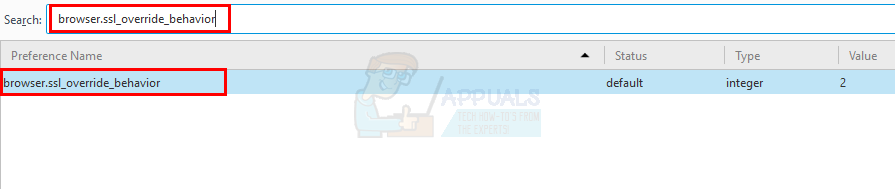 - Double click the ssl_override_behavior entry (there should only be one entry)