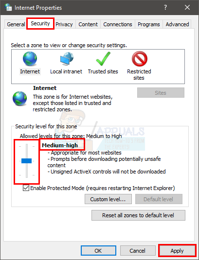 Changing the security settings of your browsers also seems to work for a lot of users. The steps for changing the security level are given below