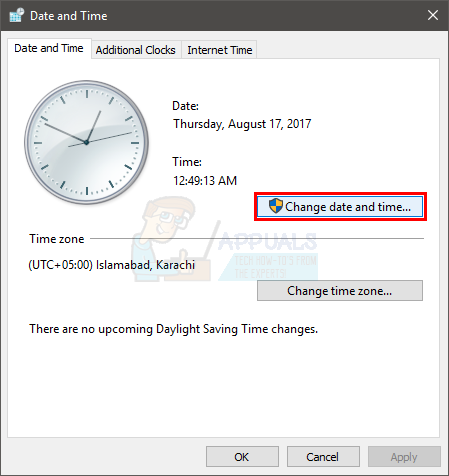 - Select Change date and time. Now set the date and time. Click Ok once you are done.