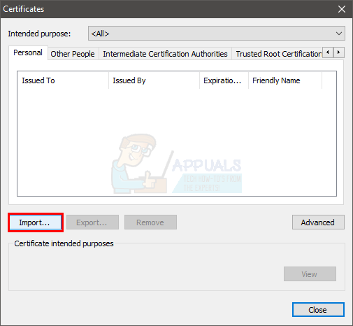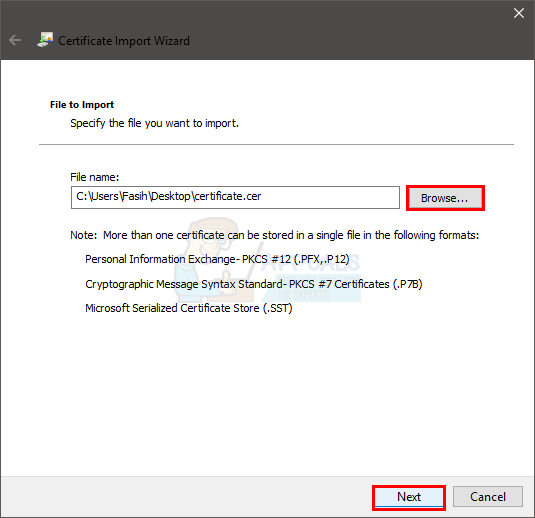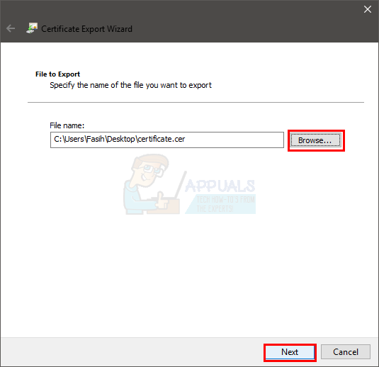 - Navigate to the location where you exported the certificate and select it. Click Open