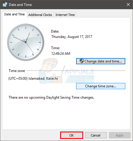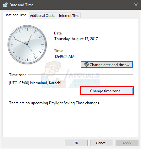 - Make sure that the correct time zone is selected. If the correct time zone isn’t selected then click Change time zone and select the correct one from the drop-down menu. Click Ok