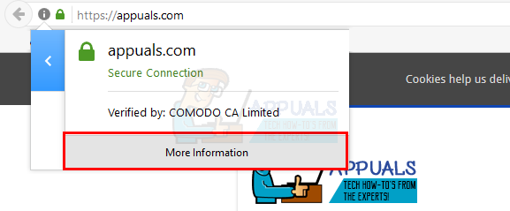 - Click on the padlock on the left side of the website’s address (in the address bar)