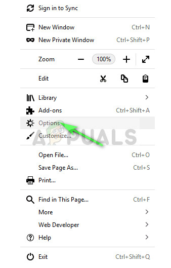 - Open Firefox, open the menu icon present on the top-right side and select “Options”.