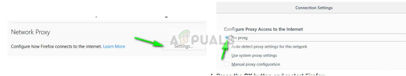 Majority of the users who face is this issue use Firefox as their browser. Firefox is known to cause these issues for a long time and a lot of users reported that disabling all the proxies solved the problem for them. Mind you that “auto-detect proxies on this network” is not the same as “No proxy”.