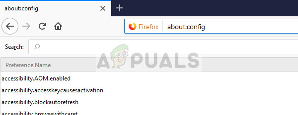 - Type “about:config” in the address bar of Firefox.