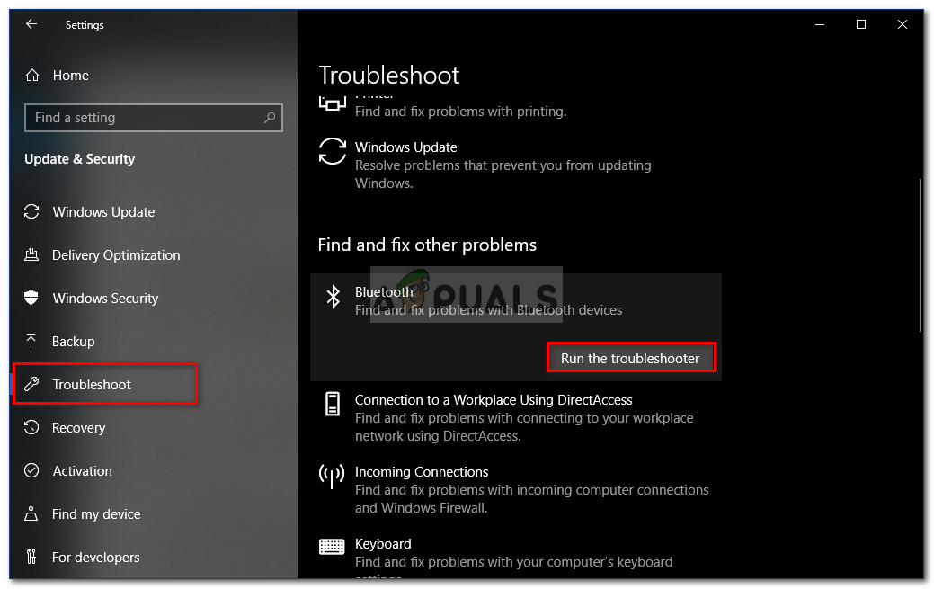 The first step of resolving your issue would be to run the Bluetooth troubleshooter located in the Windows Settings. The troubleshooter will look for any driver issues and potentially fix your issue. Here’s how to run it: