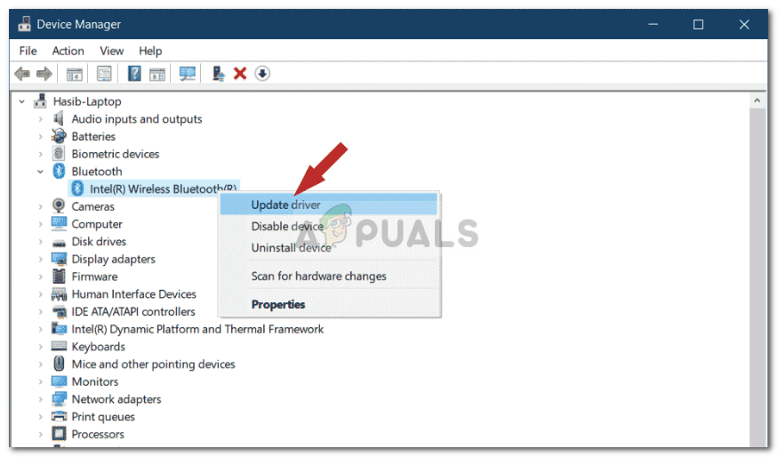 - Right-click on your Bluetooth driver and select ‘Update driver’.