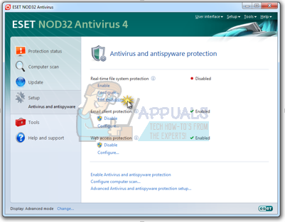 After copying the address open ESET NOD32 and paste the location in “exclude from real-time scanning“.