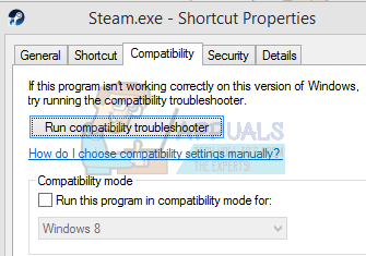 We can check if your Steam is running in compatibility mode. In some cases, Steam runs incompatibility after sensing your operating system. The main role of a compatibility mode is to help older programs run in newer versions of Windows. Windows pretends (towards that app) that it is an older version so the application can run more smoothly and efficiently. However, this may prove to be a problem sometimes when Steam itself has moved on from the previous version to the newer one but the settings are still enabled.