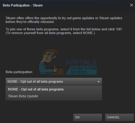 - Select the option which says “NONE- Opt-out of all beta programs”. Close Steam and an open task manager to end all the Steam processes. Restart your computer and open Steam again. If your client was part of a beta program, it will install some updates before you can play your games again.