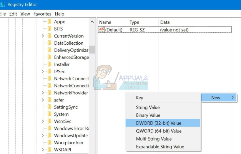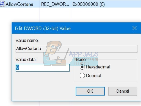 - After selecting the option, a new listing will appear which will be ready to be named. You should name it “AllowCortana”. After you have named it, double click on it so we can ensure that the Value Data is labeled as “0”.