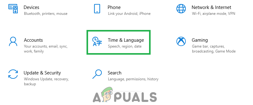 - Press “Windows” + “I” to open the settings and click on the “Time and Language” button to open the Date and time settings.