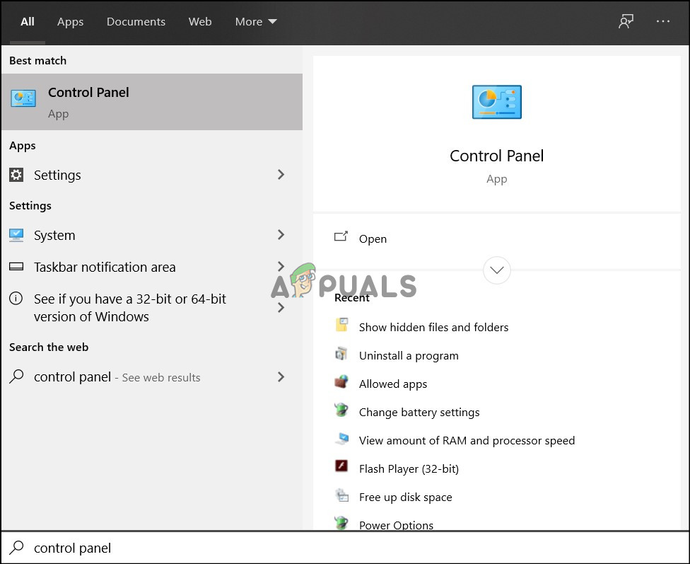 - Type in “Control Panel” and press “enter” to launch the classical Control Panel interface.