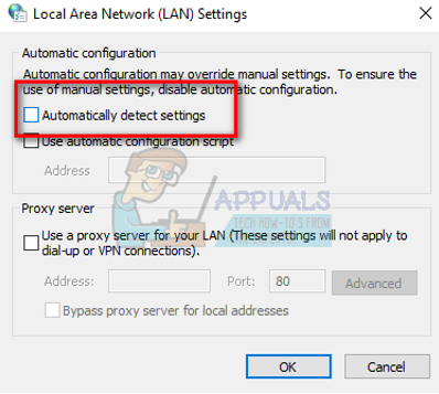 Solution 3: Enabling Automatically Detect Settings and Disabling LAN settings