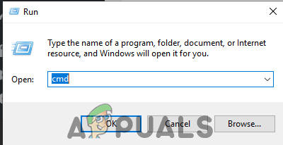 - Type in “cmd” in the dialogue box and press “Enter“.
