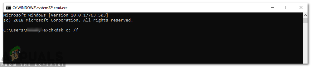 Typing in “cmd” - Type in “chkdsk c: /f” and press “Enter” to initiate it.